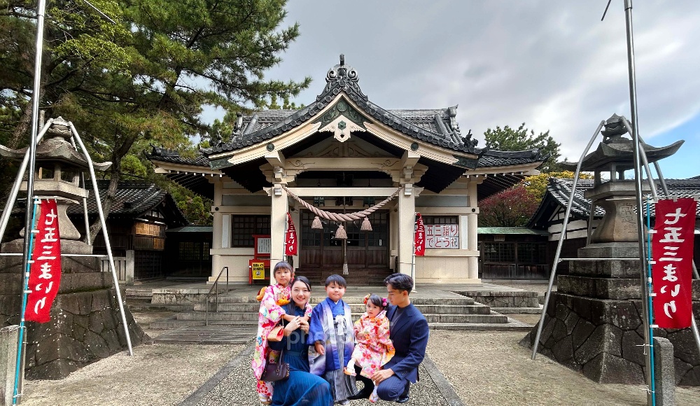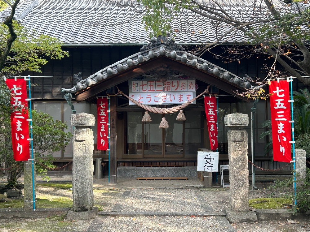 七五三詣りの年齢は、3歳(男・女)、5歳(男)、7歳(女)で、数え年と満年齢のどちらでお祝いしても良いとされています。昔は数え年で行うのが一般的でしたが、現在は満年齢でお祝いする方が増えています。令和7年からご祈祷指定日の受付、待ち合わせ場所が社務所になりました。また、記念写真の撮影も室内で出来るようになり、雨風を心配する必要がなくなりました。七五三のご祈祷指定日に参拝するとおみやげがもらえます。